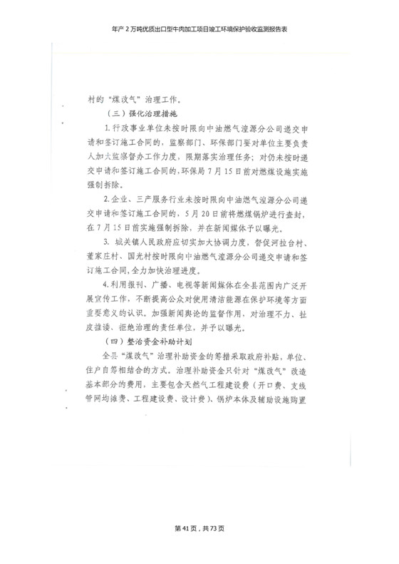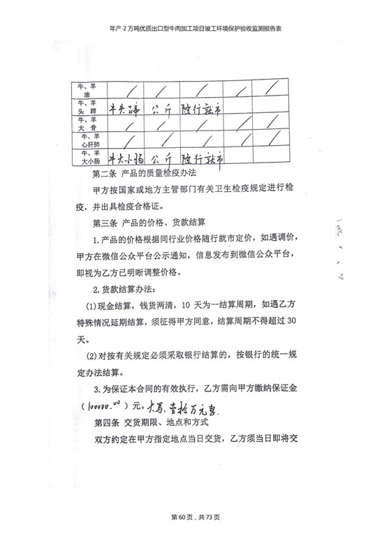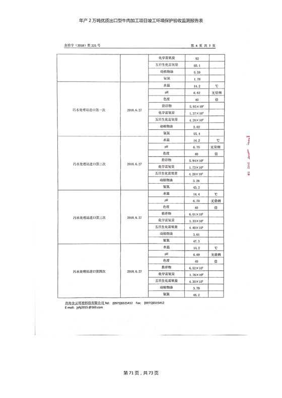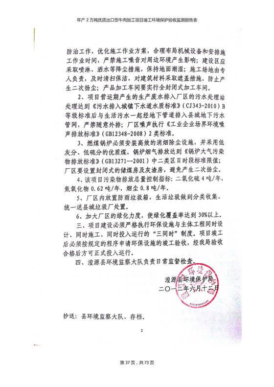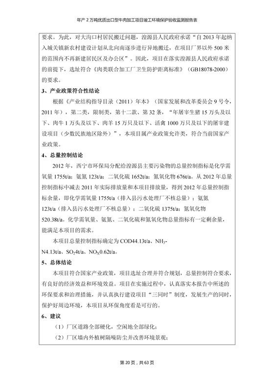 根據(jù)中華人民共和國國務(wù)院令第253號《建設(shè)項(xiàng)目環(huán)境保護(hù)管理?xiàng)l例》(中華人民共和國國務(wù)院令第682號《國務(wù)院關(guān)于修改〈建設(shè)項(xiàng)目環(huán)境保護(hù)管理?xiàng)l例〉的決定》和《建設(shè)項(xiàng)目竣工環(huán)境保護(hù)驗(yàn)收暫行辦法》,嚴(yán)格依照有關(guān)法律法規(guī),建設(shè)項(xiàng)目環(huán)境保護(hù)設(shè)施驗(yàn)收技術(shù)規(guī)范,本項(xiàng)目環(huán)評報(bào)告表和環(huán)保審批部門審批意見以及企業(yè)自行驗(yàn)收相關(guān)要求等對本項(xiàng)目進(jìn)行驗(yàn)收,本項(xiàng)目符合環(huán)保驗(yàn)收條件,可以通過環(huán)保驗(yàn)收。 青海三江一力農(nóng)業(yè)有限公司組織召開年產(chǎn)2萬噸優(yōu)質(zhì)出口型牛肉加工項(xiàng)目(一期工程)驗(yàn)收組意見.