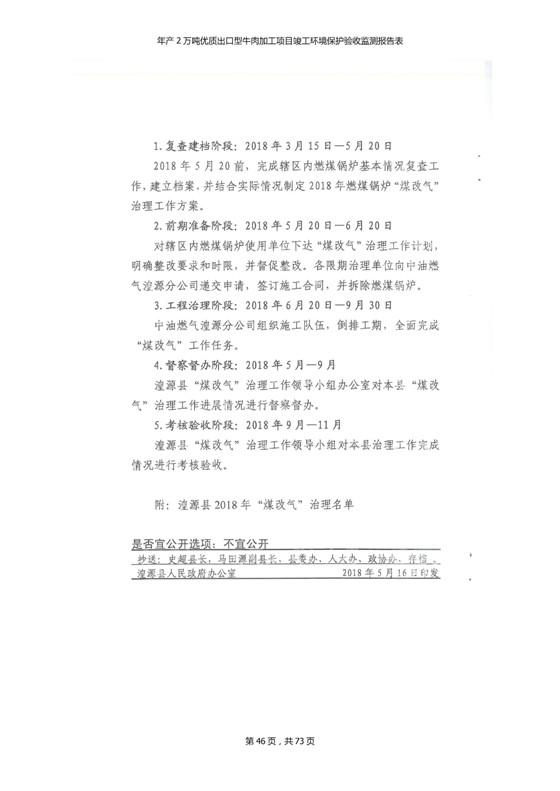 2018年7月11日,青海三江一力農(nóng)業(yè)有限公司組織召開年產(chǎn)2萬噸優(yōu)質(zhì)出口型牛肉加工項(xiàng)目竣工環(huán)境保護(hù)驗(yàn)收會(huì)。