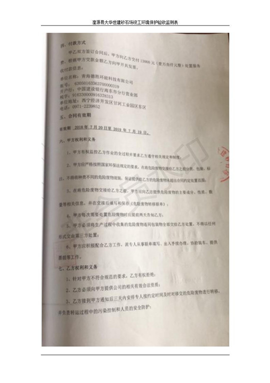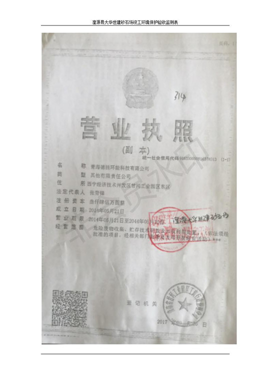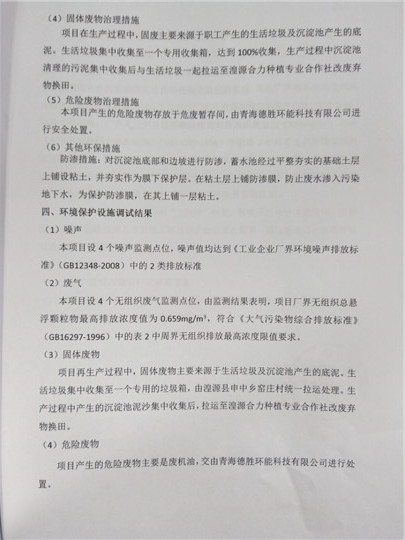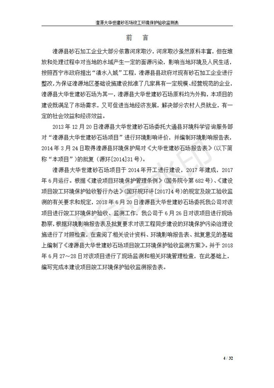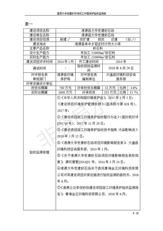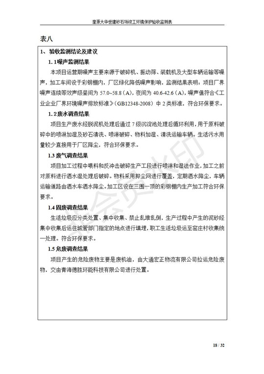 根據(jù)中華人民共和國國務(wù)院令第253號《建設(shè)項目環(huán)境保護(hù)管理條例》(中華人民共和國國務(wù)院令第682號《國務(wù)院關(guān)于修改〈建設(shè)項目環(huán)境保護(hù)管理條例〉的決定》和《建設(shè)項目竣工環(huán)境保護(hù)驗收暫行辦法》,嚴(yán)格依照有關(guān)法律法規(guī),建設(shè)項目環(huán)境保護(hù)設(shè)施驗收技術(shù)規(guī)范,本項目環(huán)評報告表和環(huán)保審批部門審批意見以及企業(yè)自行驗收相關(guān)要求等對本項目進(jìn)行驗收,本項目符合環(huán)保驗收條件,可以通過環(huán)保驗收。 湟源大華世建砂石場建設(shè)項目竣工環(huán)境保護(hù)驗收意見.
