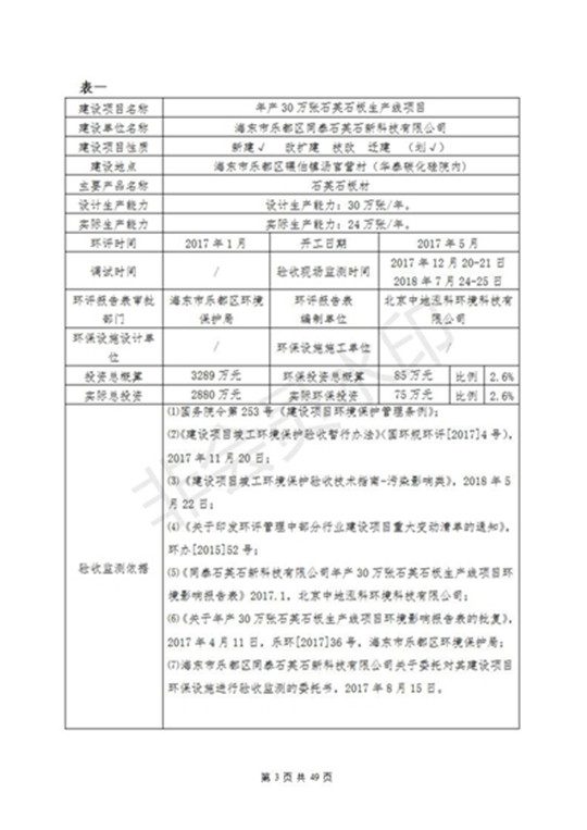 根據(jù)中華人民共和國(guó)國(guó)務(wù)院令第253號(hào)《建設(shè)項(xiàng)目環(huán)境保護(hù)管理?xiàng)l例》(中華人民共和國(guó)國(guó)務(wù)院令第682號(hào)《國(guó)務(wù)院關(guān)于修改〈建設(shè)項(xiàng)目環(huán)境保護(hù)管理?xiàng)l例〉的決定》和《建設(shè)項(xiàng)目竣工環(huán)境保護(hù)驗(yàn)收暫行辦法》,嚴(yán)格依照有關(guān)法律法規(guī),建設(shè)項(xiàng)目環(huán)境保護(hù)設(shè)施驗(yàn)收技術(shù)規(guī)范,本項(xiàng)目環(huán)評(píng)報(bào)告表和環(huán)保審批部門(mén)審批意見(jiàn)以及企業(yè)自行驗(yàn)收相關(guān)要求等對(duì)本項(xiàng)目進(jìn)行驗(yàn)收,本項(xiàng)目符合環(huán)保驗(yàn)收條件,可以通過(guò)環(huán)保驗(yàn)收。 海東市樂(lè)都區(qū)同泰科技有限公司竣工環(huán)境保護(hù)驗(yàn)收監(jiān)測(cè)報(bào)告公示