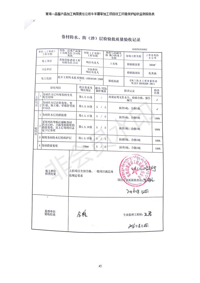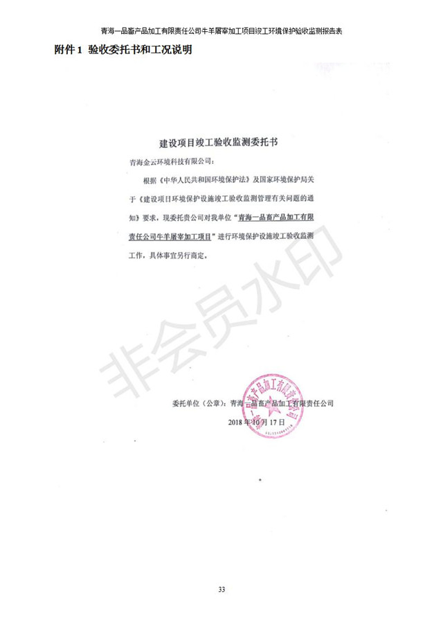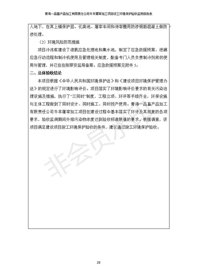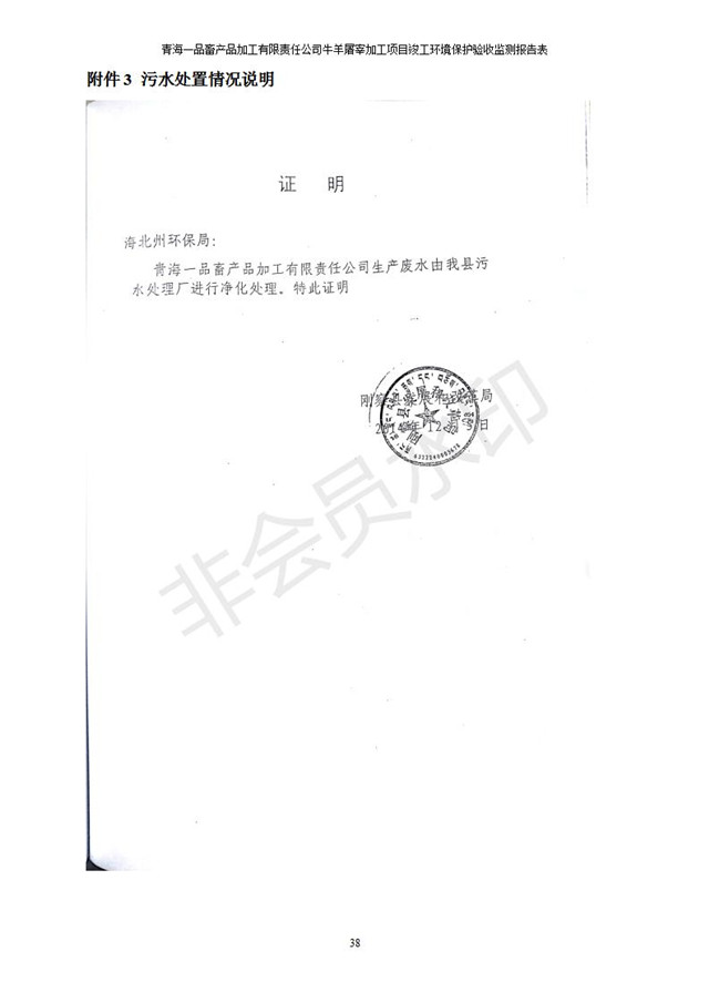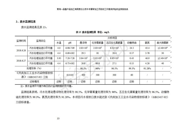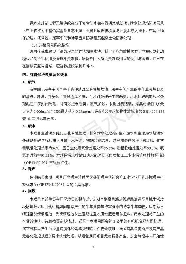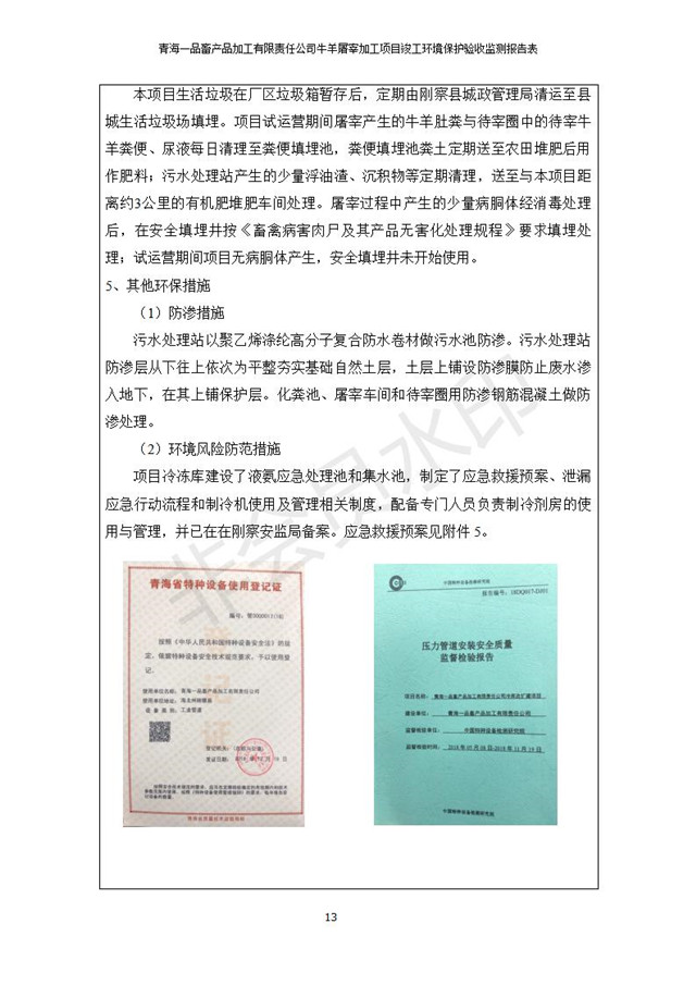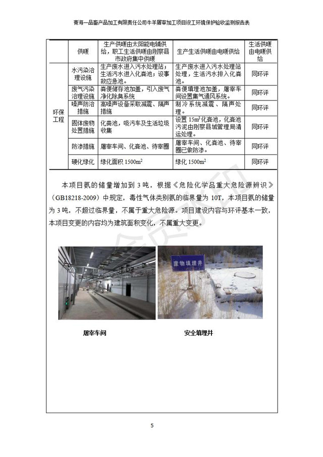 根據(jù)中華人民共和國國務(wù)院令第682號《國務(wù)院關(guān)于修改〈建設(shè)項目環(huán)境保護(hù)管理條例〉的決定》和《建設(shè)項目竣工環(huán)境保護(hù)驗收暫行辦法》(國務(wù)院令682號),青海一品畜產(chǎn)品加工有限責(zé)任公司牛羊屠宰加工項目(包括竣工環(huán)境保護(hù)驗收監(jiān)測報告表和驗收意見)公示如下。 一、項目名稱:青海一品畜產(chǎn)品加工有限責(zé)任公司牛羊屠宰加工項目竣工環(huán)境保護(hù)驗收監(jiān)測報告表 二、地點:剛察縣縣城東大街加油站東側(cè) 三、建設(shè)單位:青海一品畜產(chǎn)品加工有限責(zé)任公司 四、建設(shè)內(nèi)容:項目地面積17453m2,項目建設(shè)內(nèi)容包括牛羊屠宰車間、牛羊肉加工車間、冷庫、辦公區(qū)、污水處理站等。 五、聯(lián)系人:張工 七、公示時間:二〇一九年一月十一日至二〇一九年二月七日 公示期間,對上述公示內(nèi)容如有異議,請以書面形式反饋,個人須署真實姓名,單位須加蓋公章。