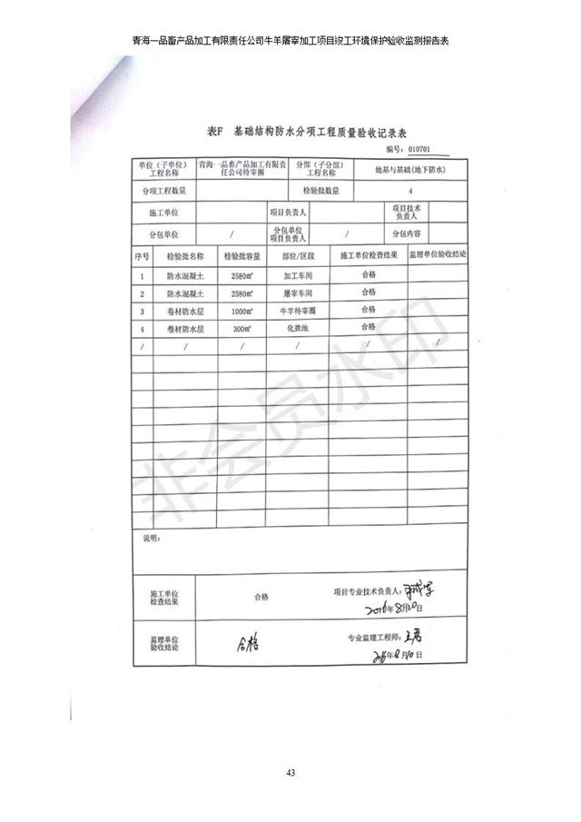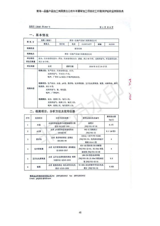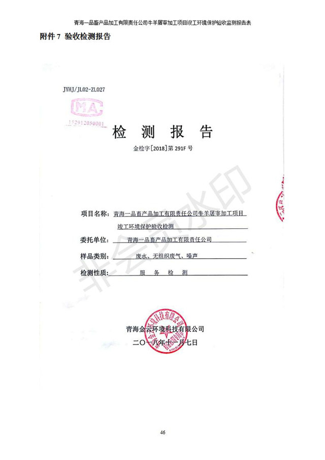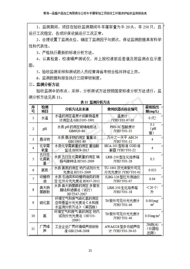 青海一品畜產(chǎn)品加工有限責(zé)任公司牛羊屠宰加工項目 竣工環(huán)境保護(hù)驗收監(jiān)測報告表公示發(fā)布日期:(2019-1-11) 點擊次數(shù):3054 |