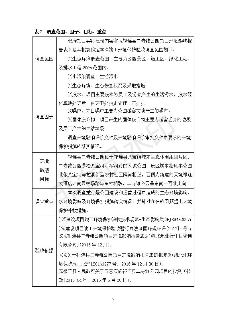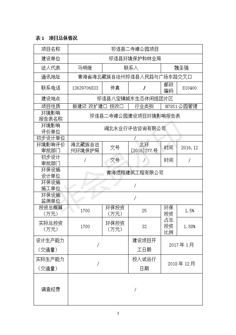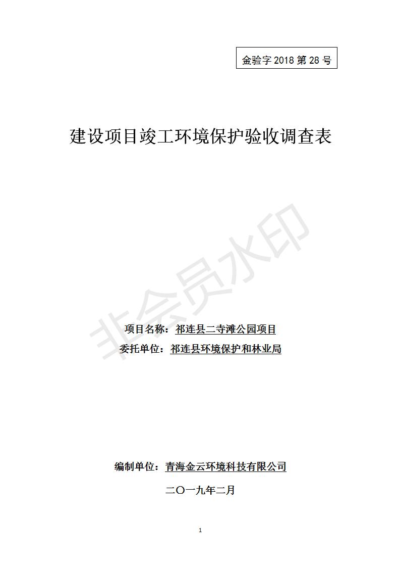 祁連縣二寺灘公園項目竣工環(huán)境保護驗收調(diào)查表公示