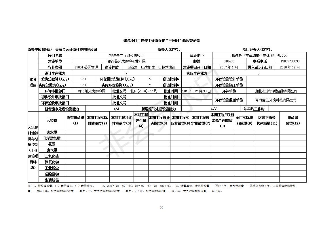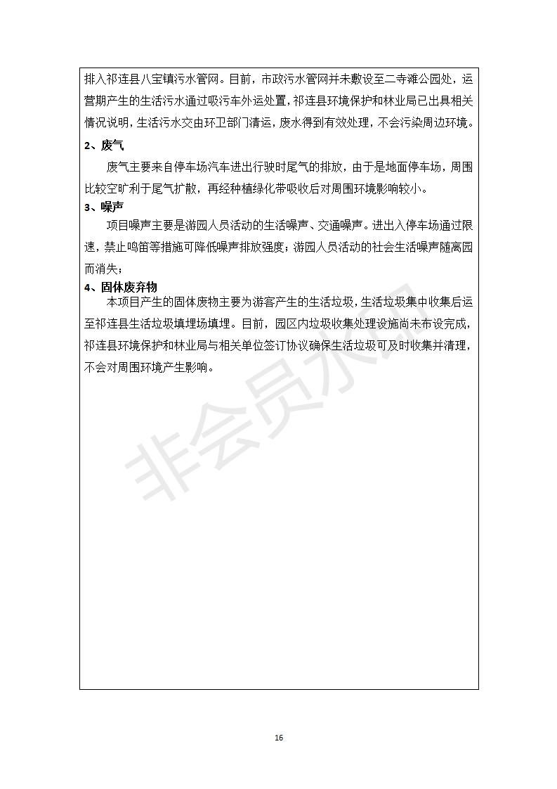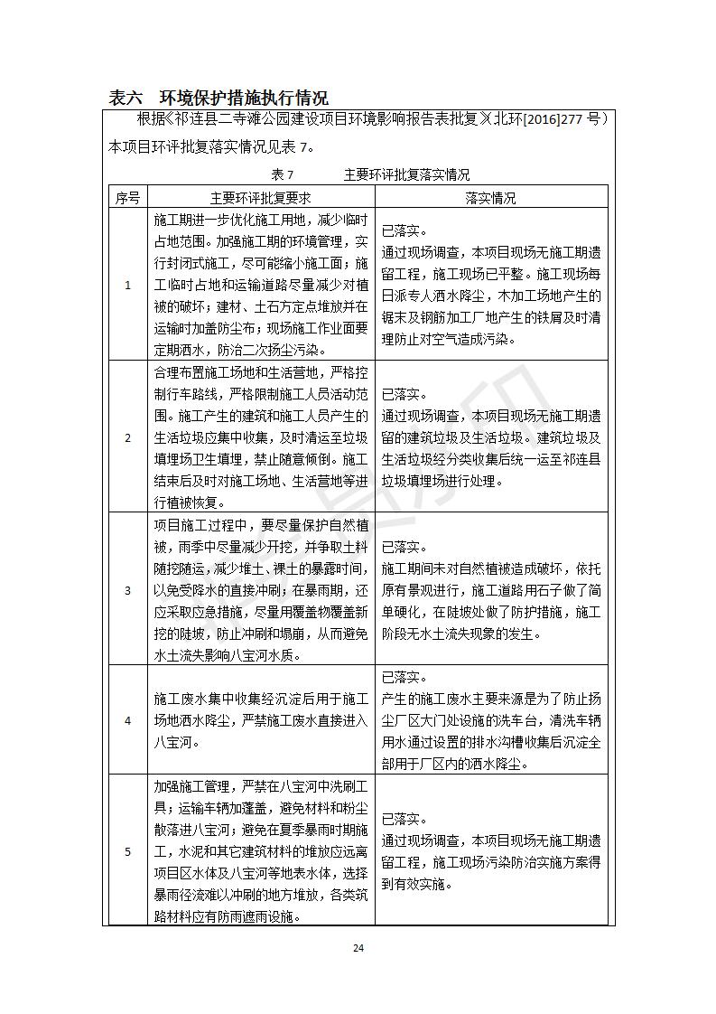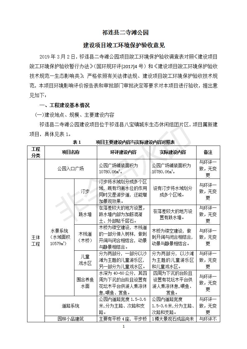 祁連縣二寺灘公園項目竣工環(huán)境保護驗收調(diào)查表公示