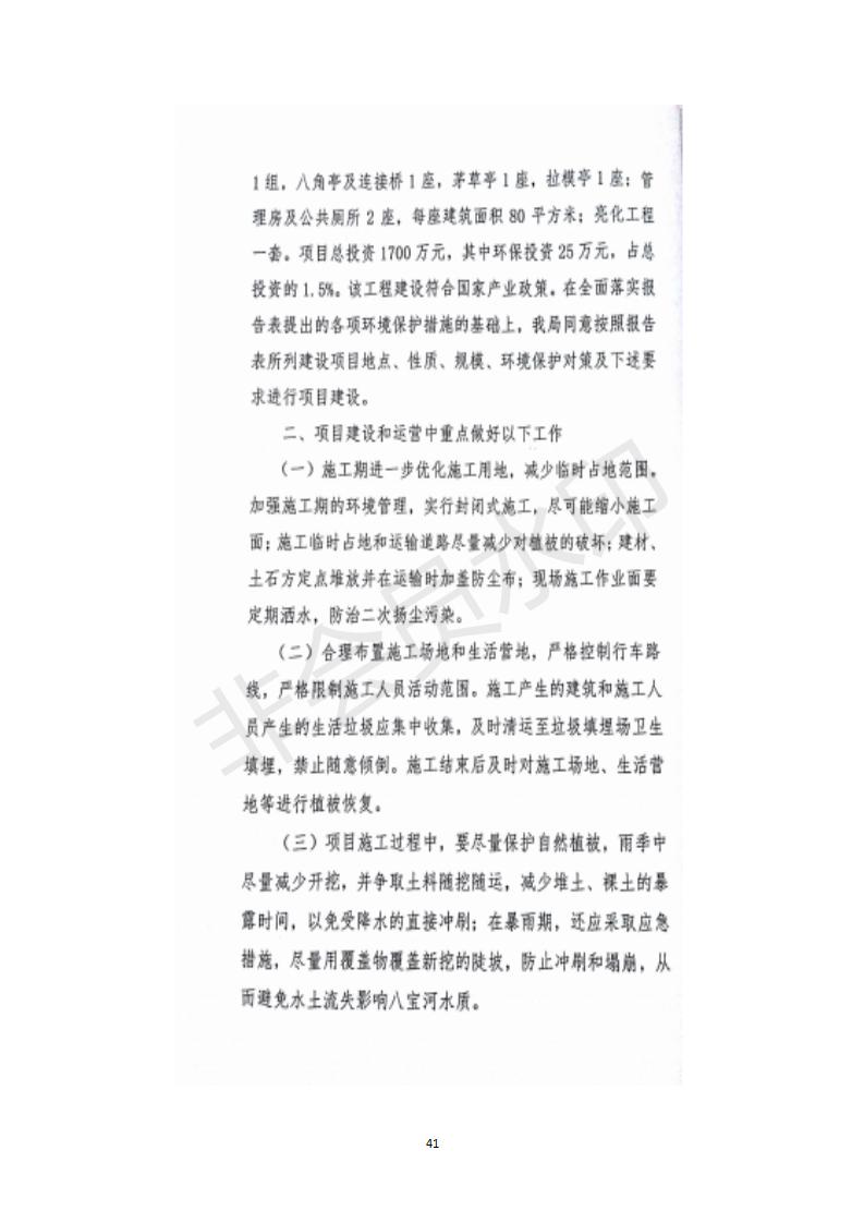 根據(jù)中華人民共和國務(wù)院令第682號《國務(wù)院關(guān)于修改〈建設(shè)項目環(huán)境保護管理條例〉的決定》和《建設(shè)項目竣工環(huán)境保護驗收暫行辦法》(國務(wù)院令682號),祁連縣二寺灘公園項目竣工環(huán)境保護驗收內(nèi)容(包括竣工環(huán)境保護驗收調(diào)查表和驗收意見)公示如下。 一、項目名稱:祁連縣二寺灘公園項目竣工環(huán)境保護驗收調(diào)查表 二、地點:祁連縣八寶鎮(zhèn)城東生態(tài)組團片區(qū) 三、建設(shè)單位:祁連縣環(huán)境保護和林業(yè)局 四、建設(shè)內(nèi)容:公園廣場入口、水景景觀、輔助工程、綠化建設(shè) 五、公示時間:二〇一九年三月十一日至二〇一九年四月八日 六、聯(lián)系人:張工 公示期間,對上述公示內(nèi)容如有異議,請以書面形式反饋,個人須署真實姓名,單位須加蓋公章。