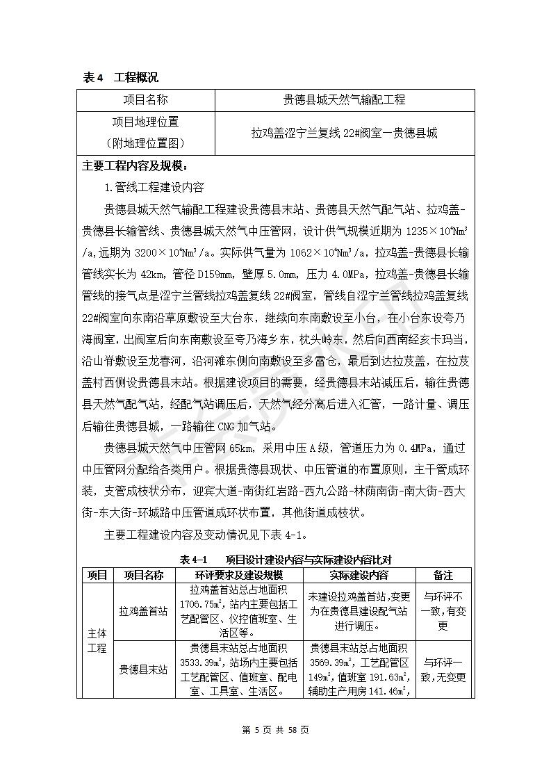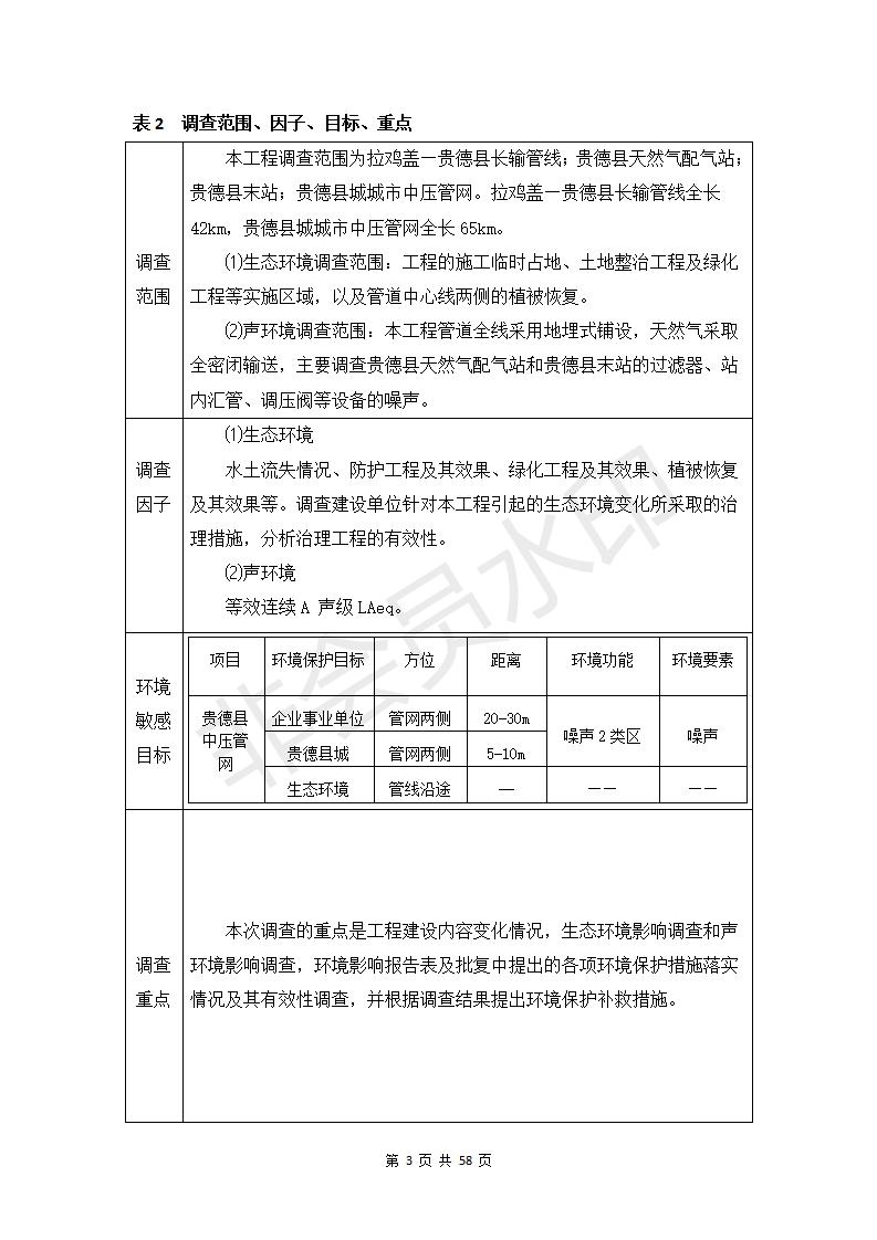 貴德縣城輸配管線工程竣工環(huán)境保護驗收調(diào)查表公示