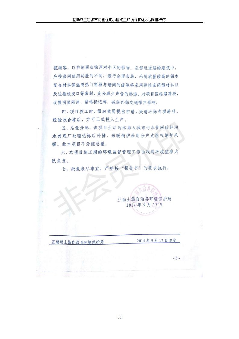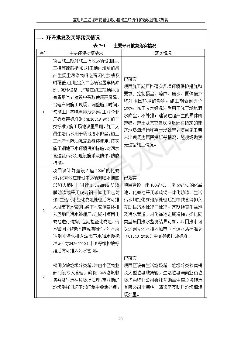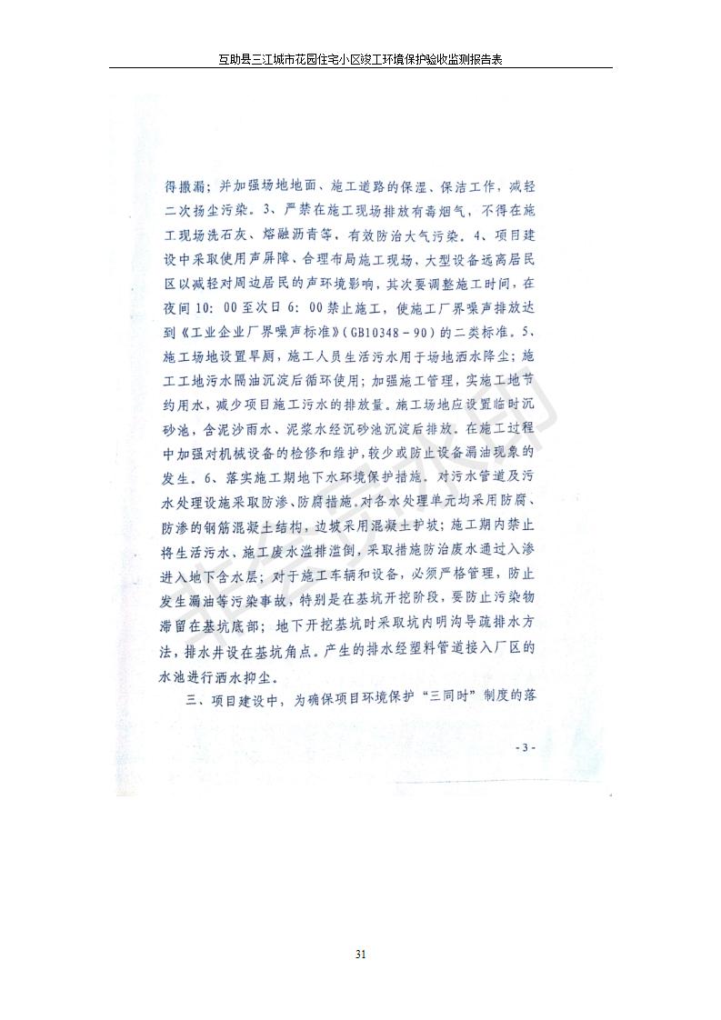 根據中華人民共和國國務院令第682號《國務院關于修改〈建設項目環(huán)境保護管理條例〉的決定》和《建設項目竣工環(huán)境保護驗收暫行辦法》(國務院令682號),互助縣三江城市花園住宅小區(qū)(包括竣工環(huán)境保護驗收監(jiān)測報告表和驗收意見)公示如下。 一、項目名稱: 互助縣三江城市花園住宅小區(qū)竣工環(huán)境保護驗收監(jiān)測報告表 二、地點:青海省海東市互助土族自治縣威遠鎮(zhèn)安定路與和諧路交匯處東南角 三、建設單位:青海三兄房地產開發(fā)有限公司 四、建設內容:項目規(guī)劃用地面積26670.0m2,實際占地面積26670.0m2,項目占地面積未發(fā)生變化,規(guī)劃設計建筑總面積76616.4m2,其中商業(yè)建筑面積8994m2。實際建筑總面積58639.64m2,其中商業(yè)建筑面積9894.27m2。 五、聯(lián)系人:張工 六、聯(lián)系電 話:0971-6515411 七、公示時間:二〇一九年六月五日至二〇一九年七月三日 公示期間,對上述公示內容如有異議,請以書面形式反饋,個人須署真實姓名,單位須加蓋公章。