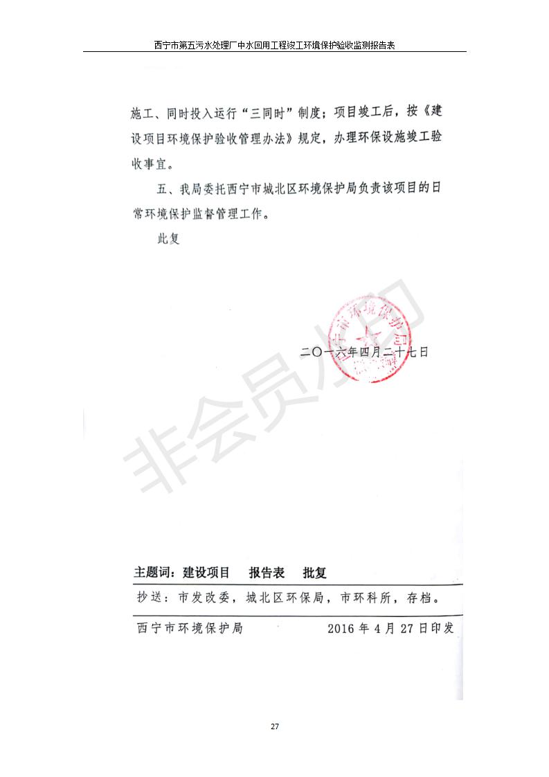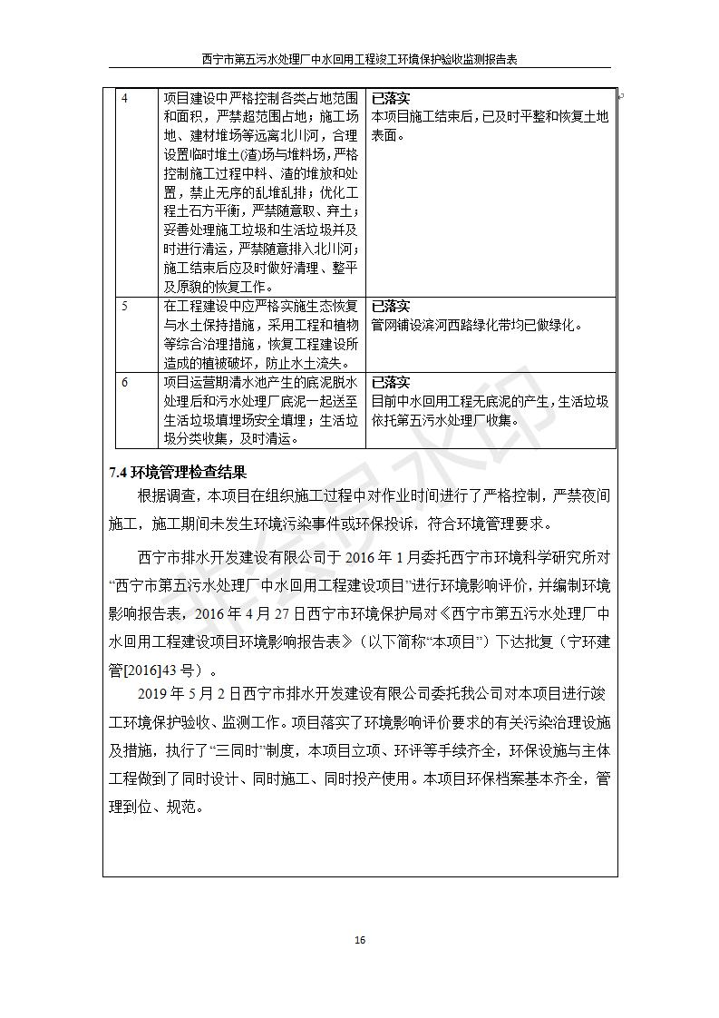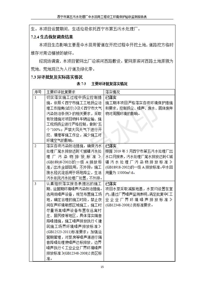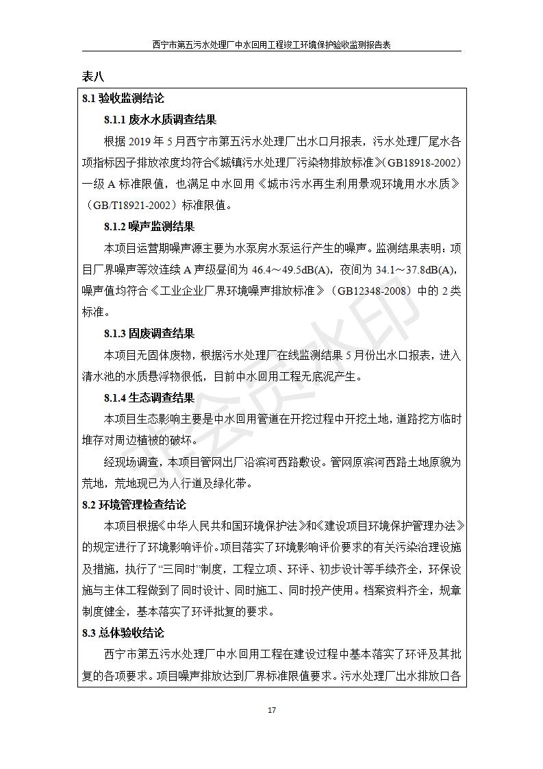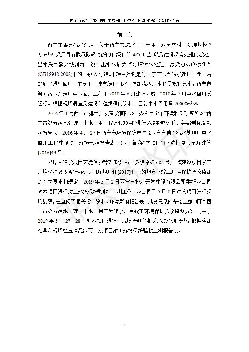 西寧市第五污水處理廠中水回用工程建設(shè)項(xiàng)目竣工環(huán)境保護(hù)驗(yàn)收監(jiān)測(cè)報(bào)告表公示發(fā)布日期:(2019-7-10) 點(diǎn)擊次數(shù):2333 |