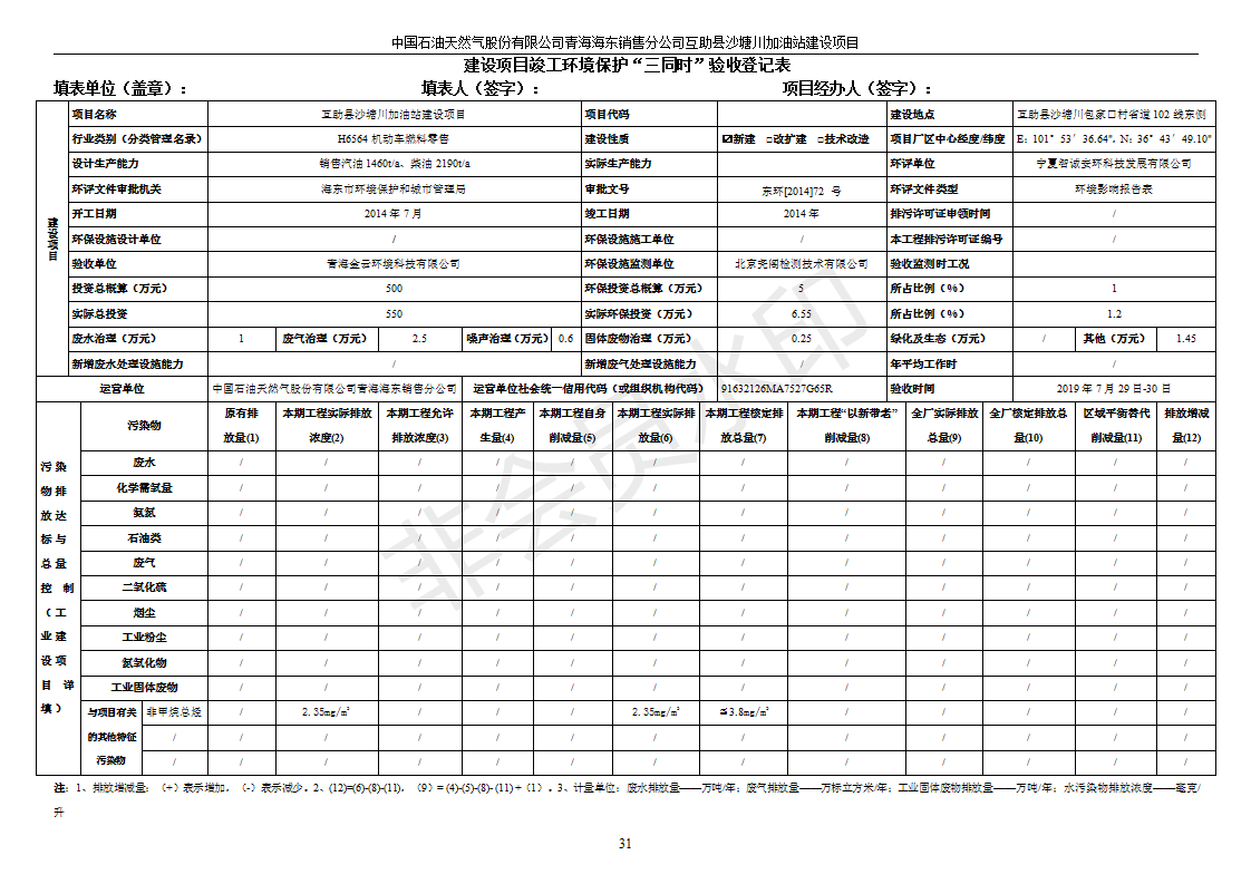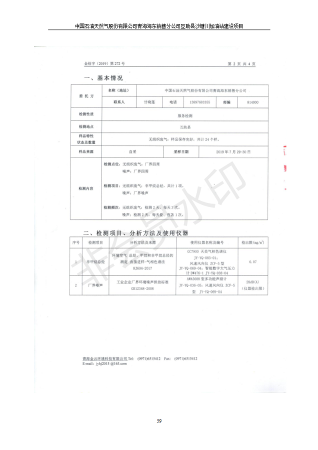 互助縣沙塘川加油站建設(shè)項目竣工環(huán)境保護驗收監(jiān)測報告表發(fā)布日期:(2019-9-27) 點擊次數(shù):2145 |