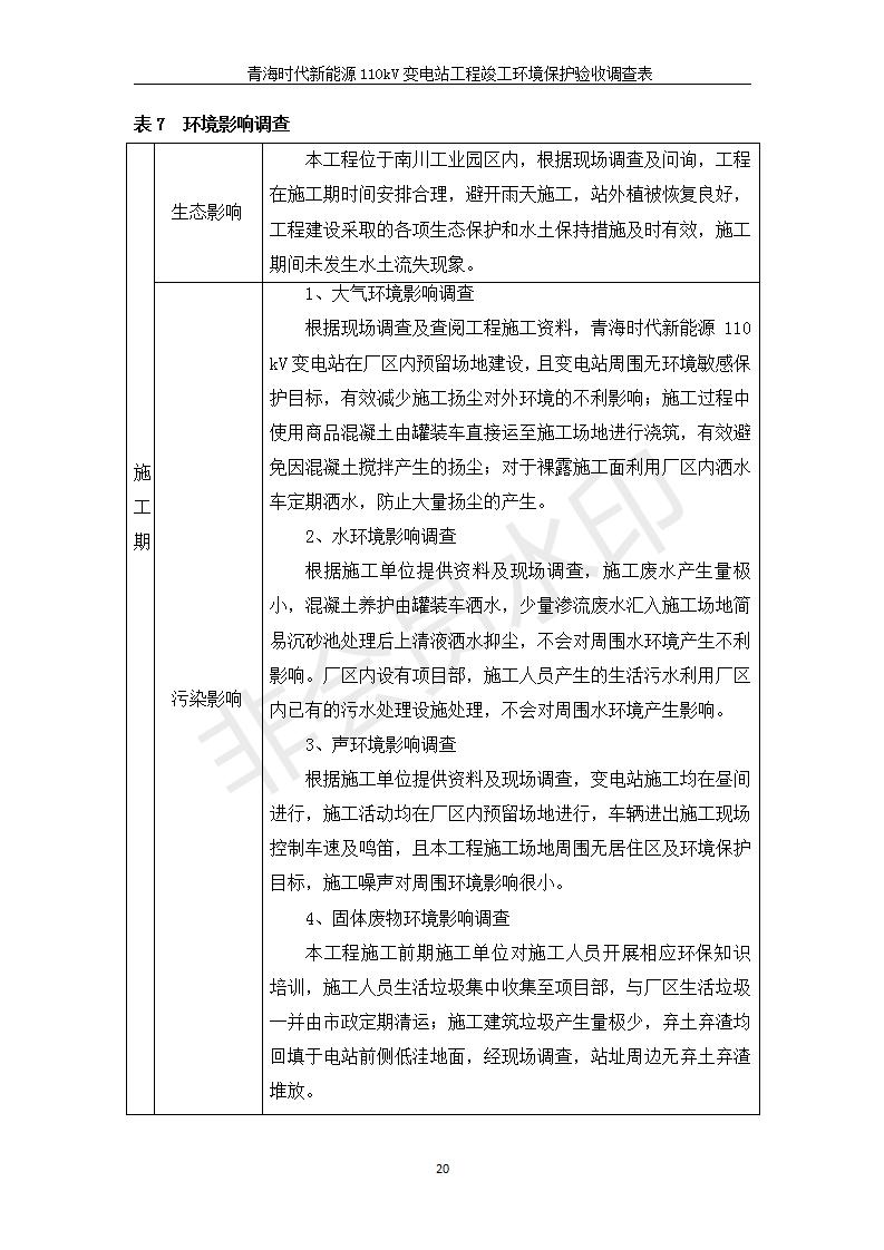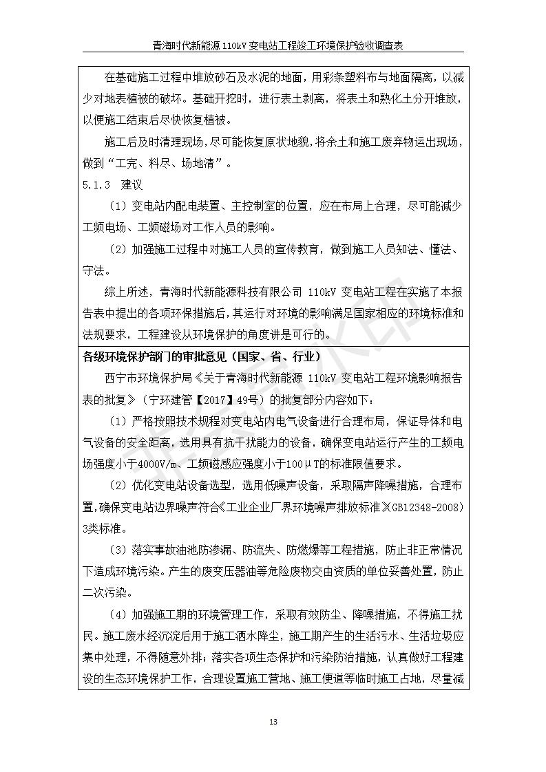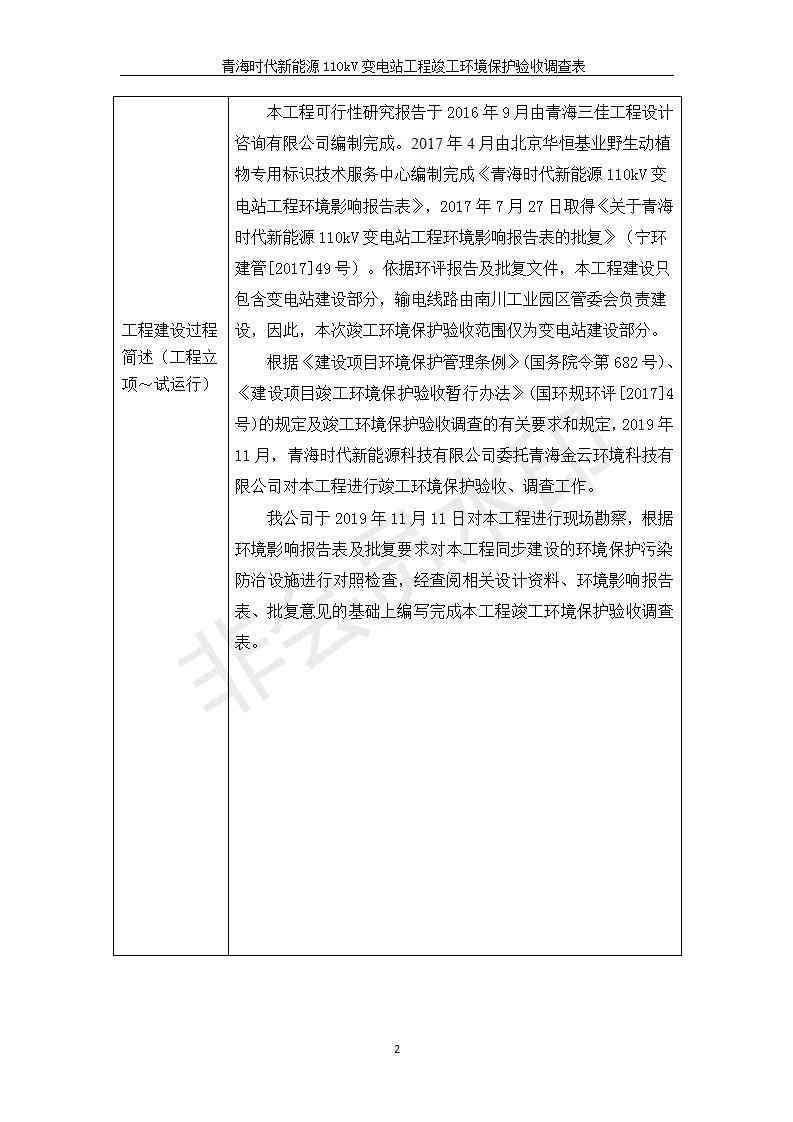 青海時代新能源110kV變電站工程竣工環(huán)境保護驗收調(diào)查表公示發(fā)布日期:(2020-1-14) 點擊次數(shù):2681 |
