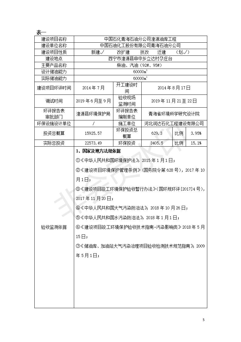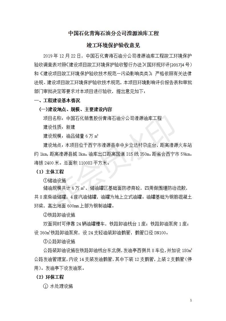 據(jù)中華人民共和國(guó)國(guó)務(wù)院令第682號(hào)《國(guó)務(wù)院關(guān)于修改〈建設(shè)項(xiàng)目環(huán)境保護(hù)管理?xiàng)l例〉的決定》和《建設(shè)項(xiàng)目竣工環(huán)境保護(hù)驗(yàn)收暫行辦法》(國(guó)務(wù)院令682號(hào)),中國(guó)石化青海石油分公司湟源油庫(kù)工程建設(shè)項(xiàng)目(包括竣工環(huán)境保護(hù)驗(yàn)收監(jiān)測(cè)報(bào)告表和驗(yàn)收意見)公示如下。 一、項(xiàng)目名稱:中國(guó)石化青海石油分公司湟源油庫(kù)工程建設(shè)項(xiàng)目 二、地點(diǎn):西寧市湟源縣申中鄉(xiāng)立達(dá)村尕莊臺(tái) 三、建設(shè)單位:中國(guó)石化銷售股份有限公司青海石油分公司 四、建設(shè)內(nèi)容:油品儲(chǔ)量6萬(wàn)m3、其他配套設(shè)施。五、聯(lián)系人:董恒棟 六、聯(lián)系電話:18697130811 七、公示時(shí)間:二〇二〇年三月十三日至二〇二〇年四月十日 公示期間,對(duì)上述公示內(nèi)容如有異議,請(qǐng)以書面形式反饋,個(gè)人須署真實(shí)姓名,單位須加蓋公章。