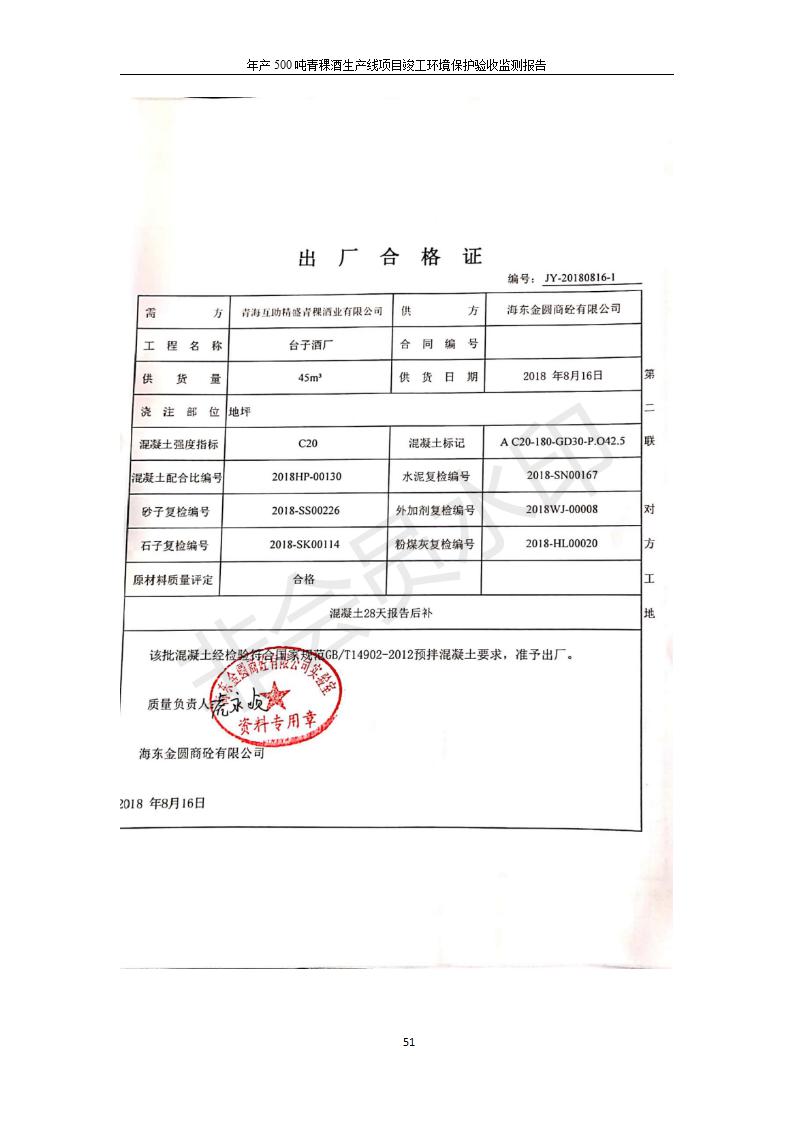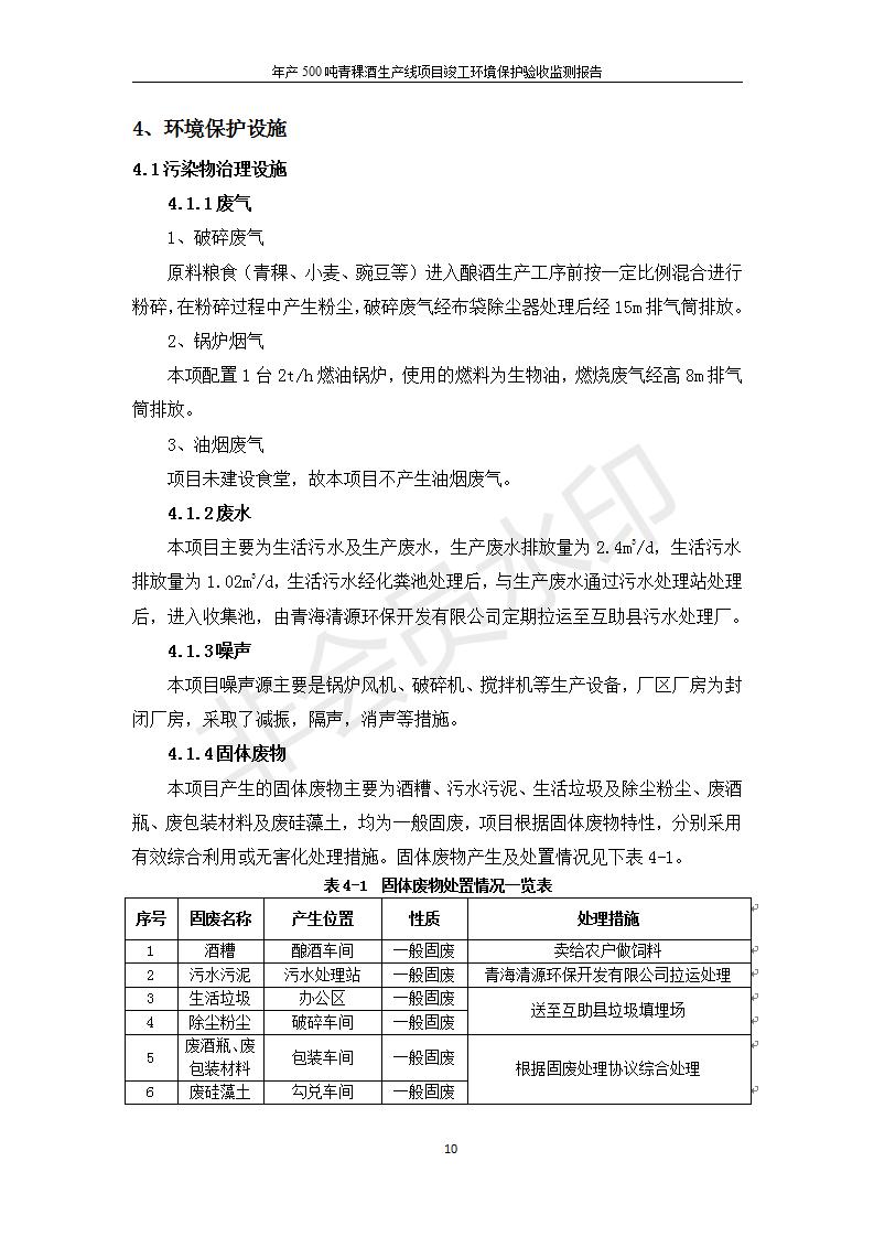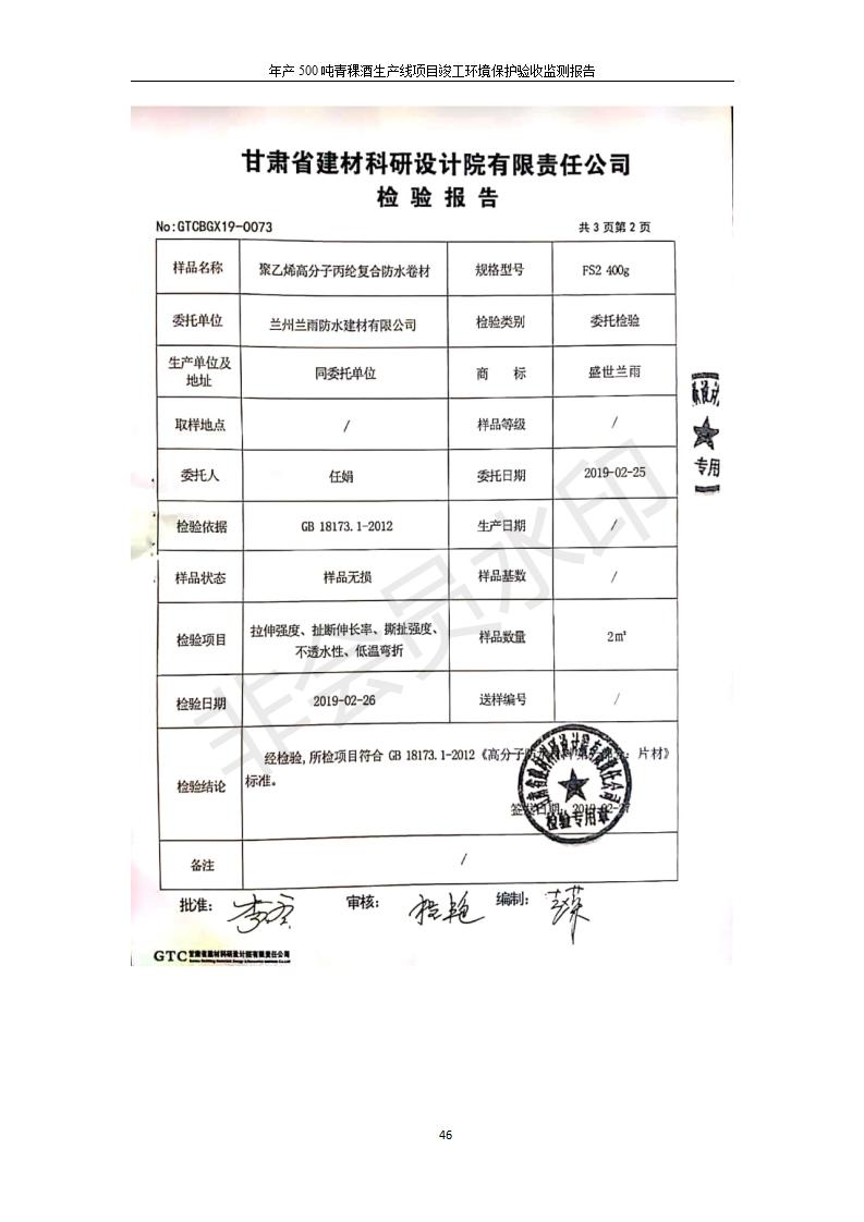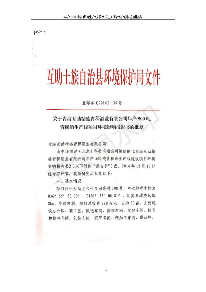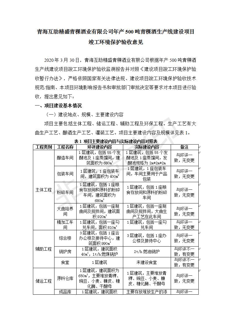 根據(jù)中華人民共和國國務院令第682號《國務院關于修改〈建設項目環(huán)境保護管理條例〉的決定》和《建設項目竣工環(huán)境保護驗收暫行辦法》(國務院令682號),綜合檢測實驗室建設項目(包括竣工環(huán)境保護驗收監(jiān)測報告表和驗收意見)公示如下。 一、項目名稱:青;ブ⑶囡茦I(yè)有限公司年產(chǎn)500噸青稞酒業(yè)生產(chǎn)線建設項目 二、地點:青海省海東市互助土族自治縣臺子鄉(xiāng)河東村198號