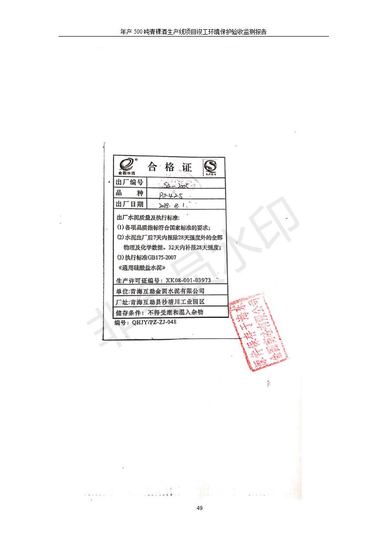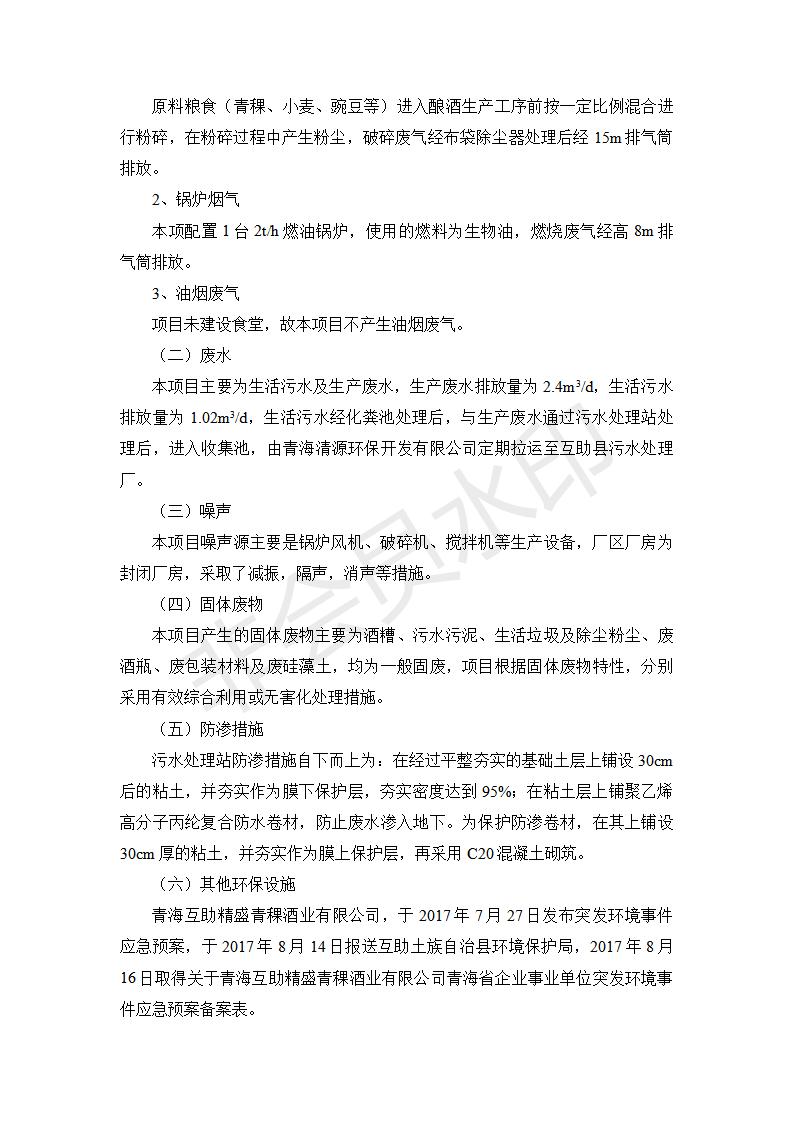 青海互助精盛青稞酒業(yè)有限公司年產(chǎn)500噸青稞酒業(yè)生產(chǎn)線建設項目竣工環(huán)境保護驗收監(jiān)測報告表公示發(fā)布日期:(2020-4-27) 點擊次數(shù):2455 |