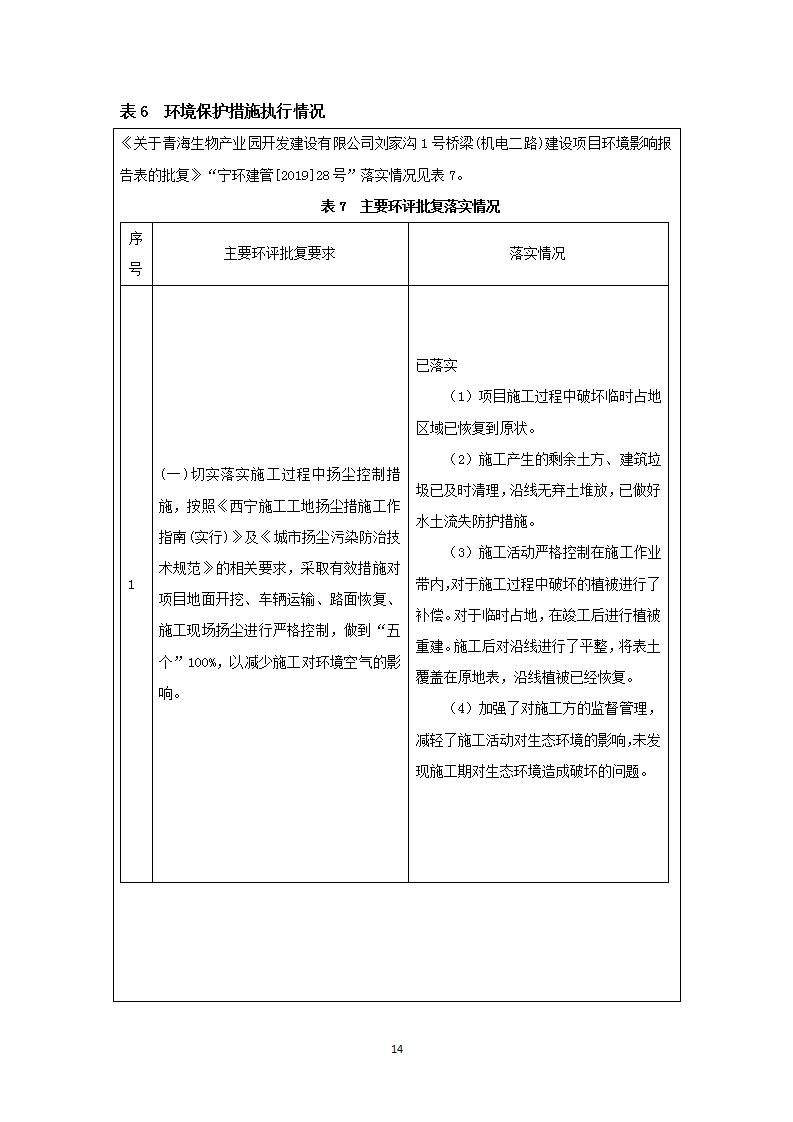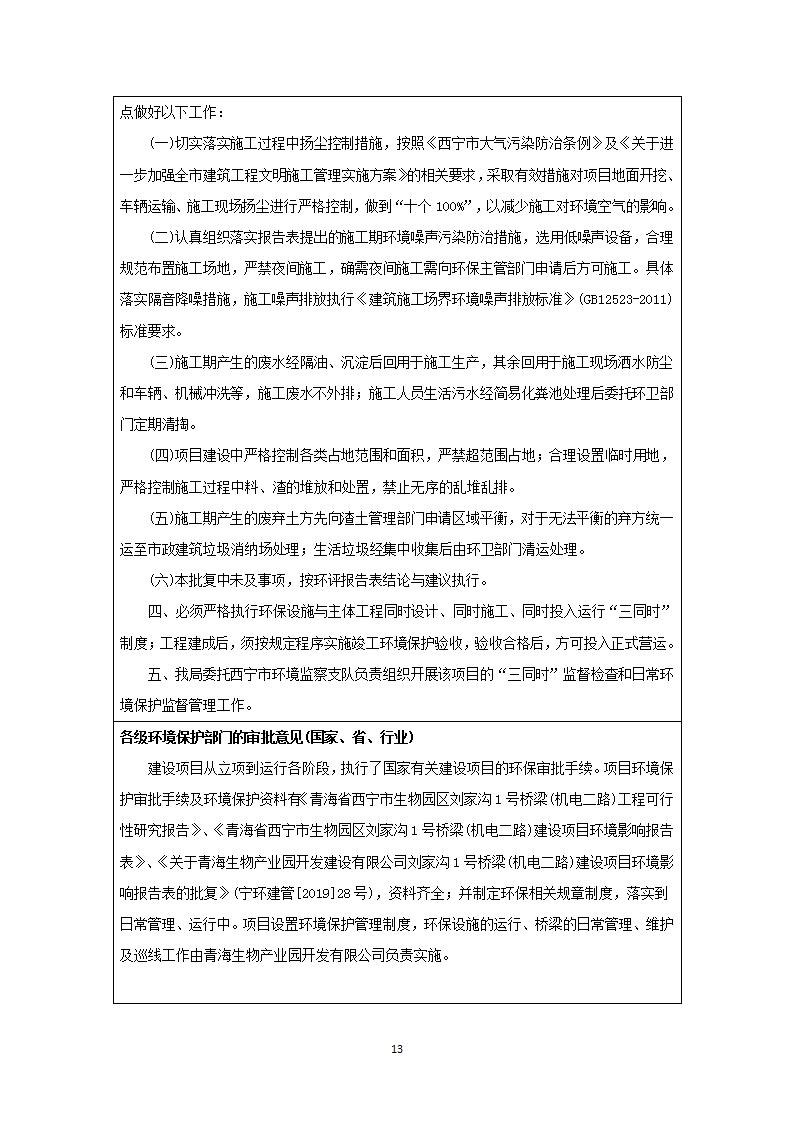根據(jù)中華人民共和國國務(wù)院令第682號《國務(wù)院關(guān)于修改〈建設(shè)項目環(huán)境保護管理條例〉的決定》和《建設(shè)項目竣工環(huán)境保護驗收暫行辦法》(國務(wù)院令682號),劉家溝1號橋梁(機電二路)建設(shè)項目竣工環(huán)境保護驗收調(diào)查表,(包括竣工環(huán)境保護驗收調(diào)查表和驗收意見)公示如下。 一、項目名稱:劉家溝1號橋梁(機電二路)建設(shè)項目竣工環(huán)境保護驗收調(diào)查表 二、地點:青海省西寧市城北區(qū)生物園區(qū) 三、建設(shè)單位:青海生物產(chǎn)業(yè)園開發(fā)建設(shè)有限公司 四、建設(shè)內(nèi)容:本項目主要建設(shè)內(nèi)容為橋梁工程、接線路基等工程。項目南北走向,北起機電二路,南至寧張路,項目全長150m. 五、聯(lián)系人:張工 六、聯(lián)系電 話:0971-6515411 七、公示時間:二〇二〇年六月二日至二〇二〇年六月三十日 公示期間,對上述公示內(nèi)容如有異議,請以書面形式反饋,個人須署真實姓名,單位須加蓋公章。 |