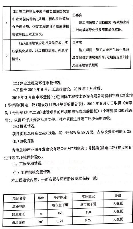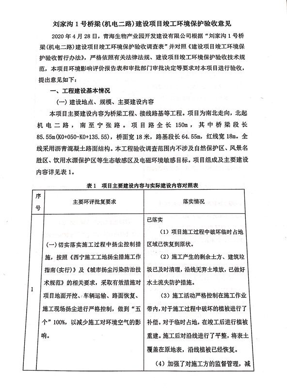 劉家溝1號橋梁(機電二路)建設(shè)項目竣工環(huán)境保護驗收調(diào)查表發(fā)布日期:(2020-6-2) 點擊次數(shù):3400 |