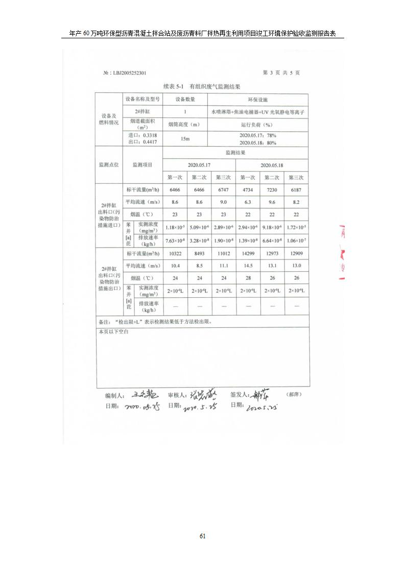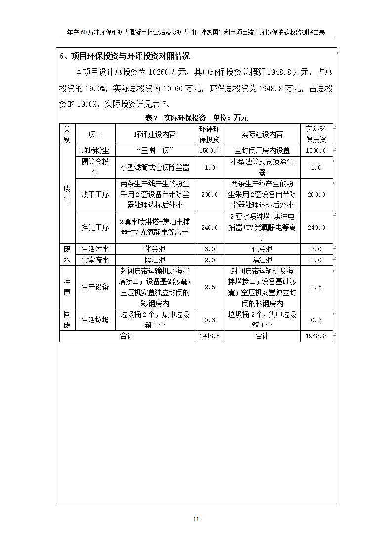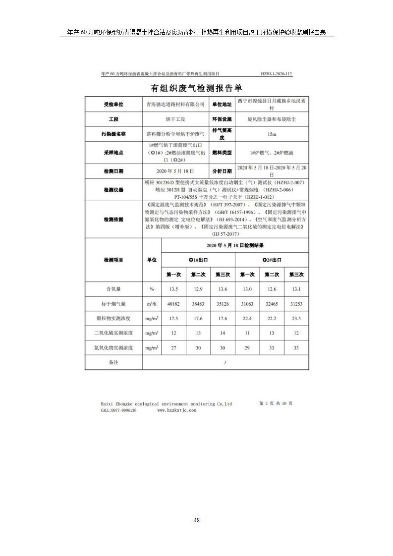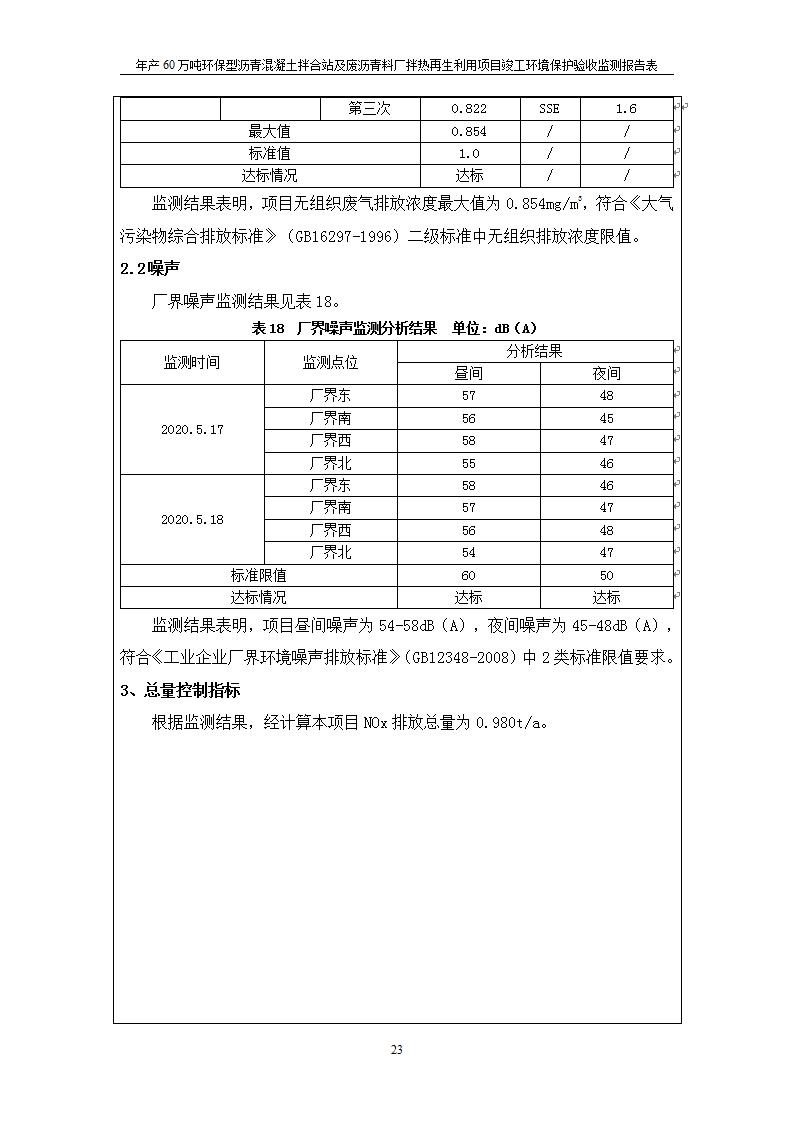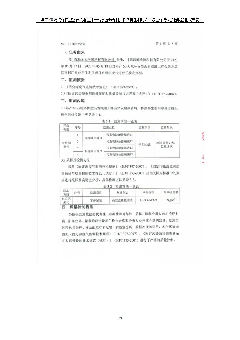 年產(chǎn)60萬(wàn)噸環(huán)保型瀝青混凝土拌合站及廢瀝青料廠拌熱再生利用項(xiàng)目竣工環(huán)境保護(hù)驗(yàn)收監(jiān)測(cè)報(bào)告表公示發(fā)布日期:(2020-7-6) 點(diǎn)擊次數(shù):3833 |