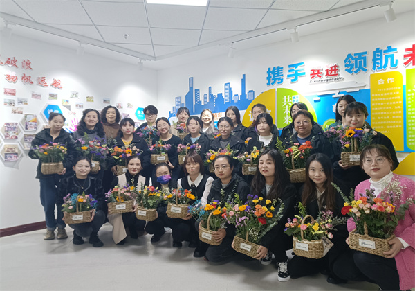 接下來,我們的女職工一起完成了一件特別有意義的活動。插花是一門具有濃郁生活氣息的高雅藝術(shù)活動,不僅能豐富我們的日常生活,美化環(huán)境,而且還能提高個人的藝術(shù)修養(yǎng),愿精美的藝術(shù)創(chuàng)作讓您在百花盛開的美景中清新恰然,陶醉其中,給您的生活添姿加彩,蘇聯(lián)教育家莫博林斯基說:人們的智慧在手指尖上,插花藝術(shù)既讓大家在動手的造型中充分開啟智慧,又能在與花為伴中感受大自然的美,這種人與自然融合的美譽,帶給大家的將是凈化心靈,陶治情操,將是喜悅的歡樂,將會使大家更加熱愛生活。